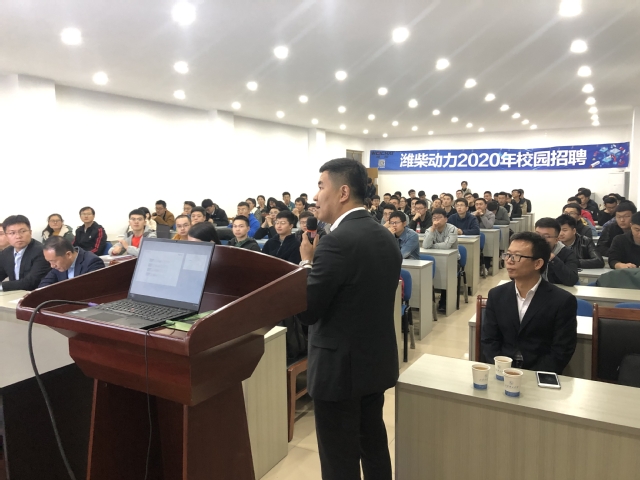 王德成向同学们介绍了潍柴动力的基本情况以及此次招聘流程和招聘要求。据悉,潍柴动力2019年的校园招聘主要面向985、211高校及体育外网十大平台app,通过前期网投简历,最终有80名左右的同学将在10月30日参加潍柴集团的两轮面试环节。