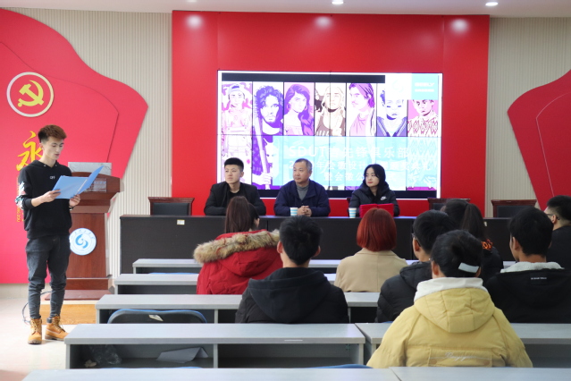 活动伊始,由大赛一等奖获奖代表赵隆达发言,他向大家讲述团队的创作思路与方案,并分析了会徽中各元素的设计含义。紧接着,由俱乐部会长于鸿硕对此次设计大赛进行总结报告,他提到,大赛于前期宣传时,部门人员分工明确,并通过线上推送消息的方式进行宣传,起到了良好的传播作用。评审阶段本着公开透明的原则进行筛选,最终为俱乐部选出了具备特色的会徽。他也对评委们与选手们深表感谢。