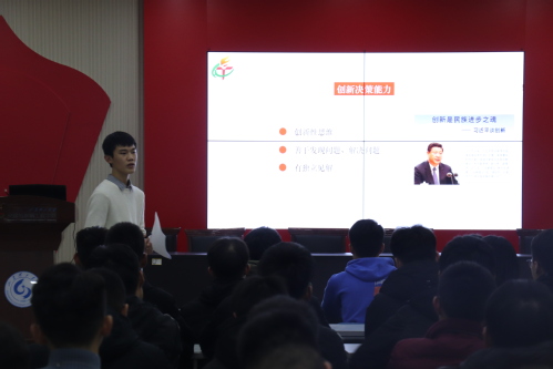 贾硕在做好员工干部这一方面,从关系、意识,能力三个大模块提出了“四五六”准则。在四种关系方面,他由时间和空间维度提出全心全意为同学服务,要有规范化、制度化、技能化的工作效率。接着他将政治、纪律、榜样等五种意识分别做出解释,希望大家可以树立优秀的意识观念,做一位创新、勤奋、和谐、卓越的交通学子。之后贾硕重点讲解了交际、判断、创新决策等六种能力。他在讲创新能力时引用主席习近平的“创新是民族之魂”话语,希望大家要培养创造性思维,善于发现解决问题,对于事件要有独到的见解。他提出用勤读书、善思辨、客观的心态,不断学习不断积累经验,让自己有更好的处事应变能力。