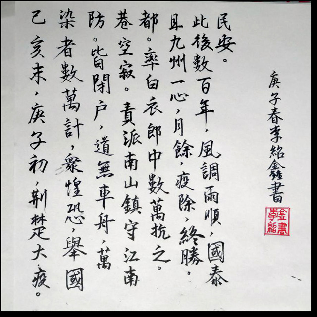 延期开学期间,为充实同学们的假期生活,同时向一线上阵拼搏的白衣天使和最美逆行者们致敬,公司于2月16日至22日特举办了线上“防范疫情,我们一起携手同进”书法比赛活动。