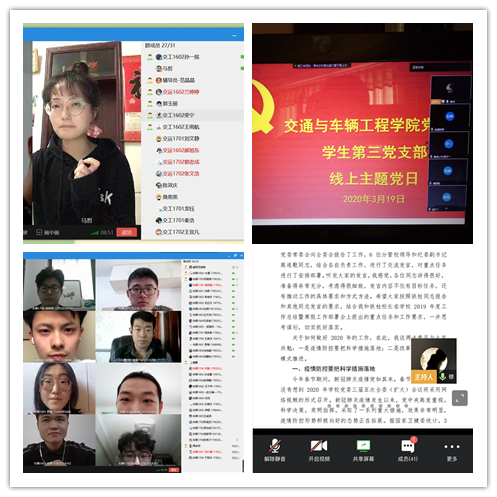 组织生活“线上过”,党员队伍“不掉线”。3月19日下午,学院8个师生党支部依托腾迅会议、瞩目、钉钉等网络会议平台组织开展理论学习,确保疫情防控特殊时期,做到组织生活不中断、政治学习不放松、工作推进不停顿。