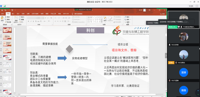 此次会议的主题围绕科技创新和学风建设两部分展开。会议开始,王翠萍对班级第一学期的各个方面进行详细的分析于总结,并针对学业困难的员工提出班级帮扶计划。其次,王翠萍提出以班风带学风,以学风带集体这一假期学习建议。随后,指出班级在科技创新方面存在的基础薄弱,积极性不高的问题,针对这一现象,班级同学张琪、于鸿硕具有丰富的经验,积极发言,并向其他同学分享科创比赛、专利写作经验,帮助其迈出科技创新的第一步。最后,在面对最近的结课考试方面,王翠萍向同学们提出几点复习建议复习,同学们应该回归基础知识查漏补缺,利用线上教学的优势多看课程视频回放,继续开展班级特色帮扶小组争取实现挂科率挂科人数的连续降低。
