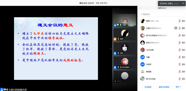 党总支副书记王建兴以“闲话长征”为题为研究生党支部讲授了党课,他围绕红军长征的历史背景、长征过程中的重要事件、长征的重要意义和长征精神等,为支部党员展开了一幅威武雄壮、催人奋进的长征画卷,他寄语支部全体党员要传承和发扬长征精神,努力走好新时代的长征路。
