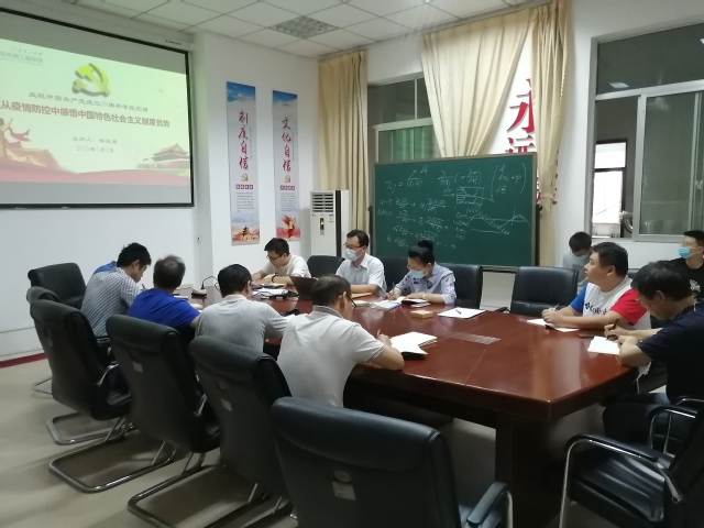 党总支书记褚兆勇以“从疫情防控中感悟中国特色社会主义制度优势”为题,为教工第二党支部讲授了党课,他从世界多国的抗疫工作对比中展开,运用丰富的数据和案例,为支部党员阐释了党中央精准施策、科学防控,团结领导全国各族人民英勇奋战,在疫情防控阻击战中取得重大战略成果,引导支部党员从疫情防控中,感悟中国特色社会主义制度优势。
