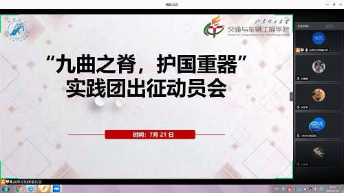 7月21日下午,体育外网十大平台app“九曲之脊,护国重器”实践团通过腾讯会议平台召开实践动员会暨出征仪式,并进行无人机设备测试。队长赵厚文向团队成员就实践的安全事项、出发时间、实践地简介三方面进行介绍,全体实践团成员参加此次会议。