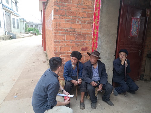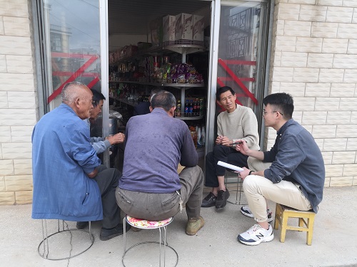 调研团队员的下一站是施家屯村公所,社保科的负责人介绍到村里建设了一个小公园及一些简单的健身设施供老年人娱乐,还定期会组织党员们到户排查询问老年人问题,并且会着重了解子女外出打工的家庭,年终还会对养老金的发放做特别工作。村公所旁有村里的寺庙,队员们前去采访了77岁高龄的主持,他在寺庙工作长达26年,主持说到他会一直在寺庙里工作下去,他养老的主要经济来源就是寺庙里面提供的工资和平时出去单独工作获得的报酬。出村之后,队员们发现了一位91岁高龄的老人,老人身体状况很好,和子女一起居住,老人主要依靠养老金和子女的收入养老,吃住得到基本解决,平时的娱乐方式就是和邻居聊天。