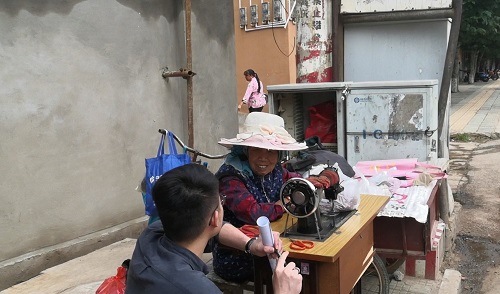 随后,团队成员驾车前往了程方桥集市。队员们首先采访了一位买蔬菜的老人,他是一位“五保”户,已经73岁高龄了,也居住在养老院。据老人所说,他的妻子和孩子都离开了他,房子也被火烧了,他无依无靠,是党的政策使他能够继续在养老院中生活。队员们接着采访了以为在路边缝补衣服的老奶奶,她也已经75岁了。队员们了解到她每个集市都会在街上摆摊,她育有1个儿子和两个女儿,目前与家里的儿子住在一起,但是儿子常年在外打工,所以她就会出来摆摊赚取点收入。奶奶说她现在的生活很好过,基本的吃穿也有所保障。