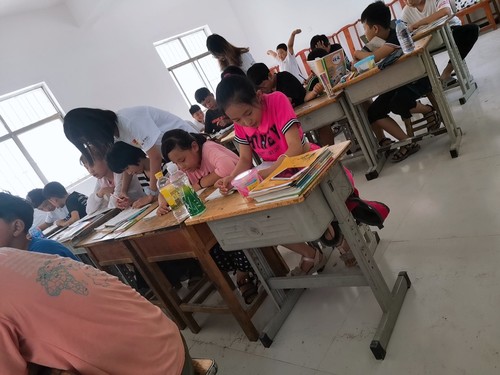 因孩子们所在年级不同,队员们以分组的形式,相对集中的为不同年级的孩子们进行学业辅导,为孩子们的文化课学习提供力所能及的帮助。