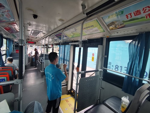针对以上问题,周道如砥·‘疫’路畅行实践团组织线下跟车调研考察,团队成员分为两组,一组对客流量较大的站点及容易发生拥堵的路段进行乘客上下车数量记录。另一组则负责统计车上的扶手、座椅数和测量扶手高度,以检验部分长途乘车的乘客是否有舒适的乘车环境。