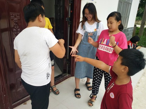 图为志愿者与孩子们的第一次相遇,孩子们的眼中满是星河茂盛。