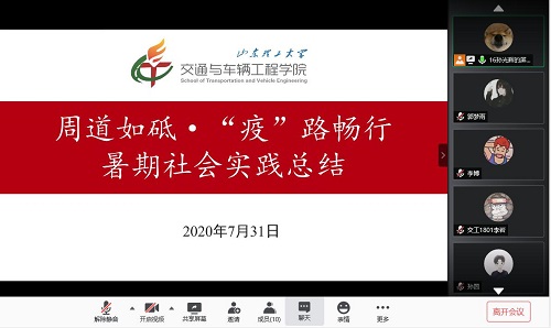 7月31日,周道如砥·“疫”路畅行实践团开展了线上暑期社会实践总结会议。本次活动通过腾讯会议举行,由调研团负责人孙光辉主持,12名队员参与会议。