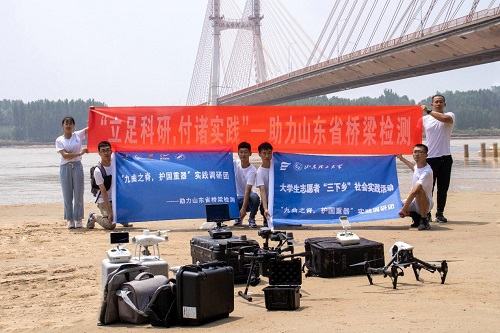 7月31日上午,九曲之脊,护国重器实践调研团队来到山东省济南市黄河大桥,团队依托现有的大疆经纬M300级无人机产品为基础,结合自主研发的创飞图像处理等软件,开展黄河大桥公益性服务检测工作。