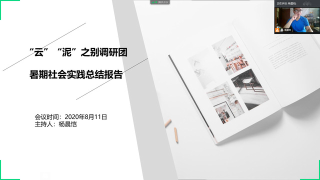 8月11日下午,体育外网十大平台app“云”“泥”之别实践调研团通过腾讯会议进行该次实践调研的总结报告活动,此次会议由实践队队长杨晨恺进行主持。