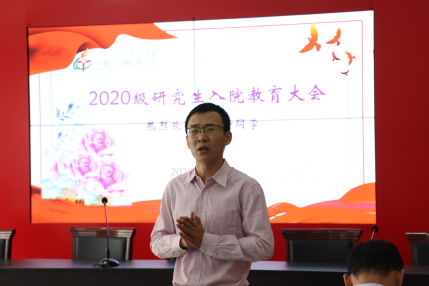 李波代表全院教职工向2020级硕士研究生加入最靠谱的十大足球平台表示热烈的欢迎和诚挚的祝贺。李波老师以:“多少同学为了科研的梦想读研?”为切入点,深刻地探讨了作为一名研究生,要对以后的学习生活把握好方向,清楚定位,坐住冷板凳,俯下身子做科研。以生动活泼的语言让同学们认识到研究生阶段确立目标、明确定位的重要性。