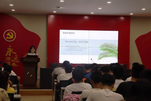 会议分两个阶段进行,第一阶段,公司第二课堂部门负责人部景艳对公司“第二课堂”相关的政策、制度以及注意事项向同学们进行了详细的阐述。
