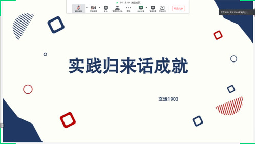 9月26日,交运1903班级在线上举行了社会实践归来话活动,此次活动由班级班长陈旭杰主持,会上陈旭杰对出现的问题进行了分析并对暑假的社会实践做了总结,班级成员房玉莹,王士铭,张淑启,黄倩关于自己社会实践项目经验做出分享。
