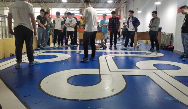 10月2日早上九点,比赛正式开始,首先由智能车协会会长金长城、副会长郭浩、王霆重申比赛规则并宣布比赛开始。各个参赛小组也正式进入了状态,每个小组有十分钟比赛时间,参赛时间里可以调试小车并修改程序,取十分钟内最短完成比赛的时间作为最终成绩。