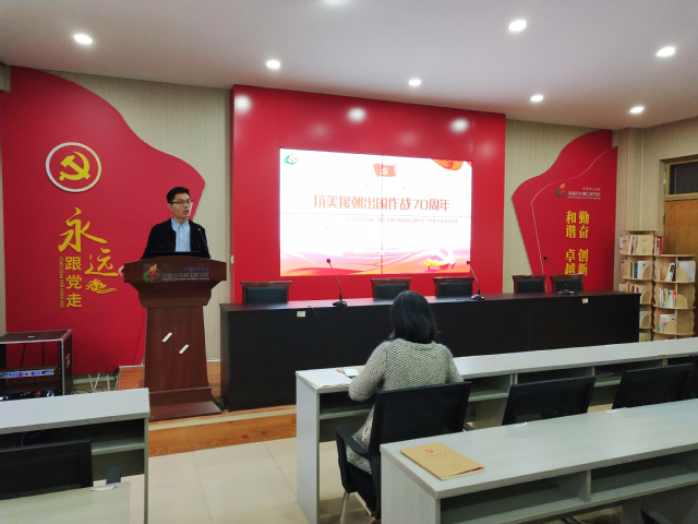 2020年10月29日下午,公司员工第三党支部于12教217开展双周主题党日活动,本次活动的主题是:纪念中国人民志愿军抗美援朝出国作战70周年集中学习暨红色先锋成长计划:员工党员“五个一”培养工程开启仪式。本次活动由员工第三党支部书记侯娟同志主持,党支部全体党员参加。