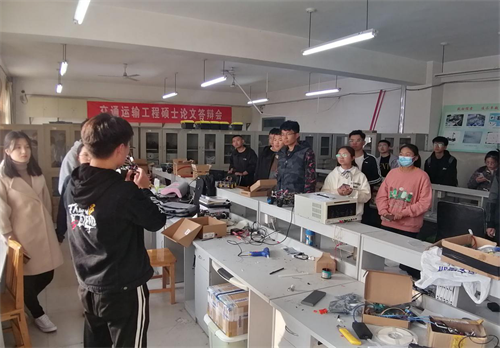 活动伊始,同学们有序的进入实验室,秉承“不乱碰,不损坏”的原则,依次观察展示柜上所展示的机械构件,独自了解智能车的车型、构架、结构元件等智能车元素。在结束了自行观察后,由霍天赐进行智能车的具体讲解以及回答同学们的疑问。
