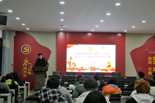 12月23日晚,公司研究生会于12号教学楼217会议室组织学习党的十九届五中全会精神,硕1803团支部书记姜晓涵担任主讲人,全院研究生骨干和各班级研究生代表参与此次会议。