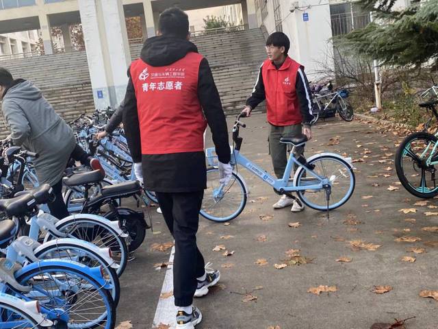 在同学们到达集合地点后,在员工会成员引领下,于十二号教学楼出发携带工具前往指定的区域进行校园环境清理工作,并整理摆放杂乱的共享单车。泥泞的道路并不是前进的阻碍,缤纷的晚霞和清新的空气让同学们忘记了疲劳,工作更加积极。交运1901团支部成员牢记争做“五有青年”的号召,积极认真的完成了工作任务。