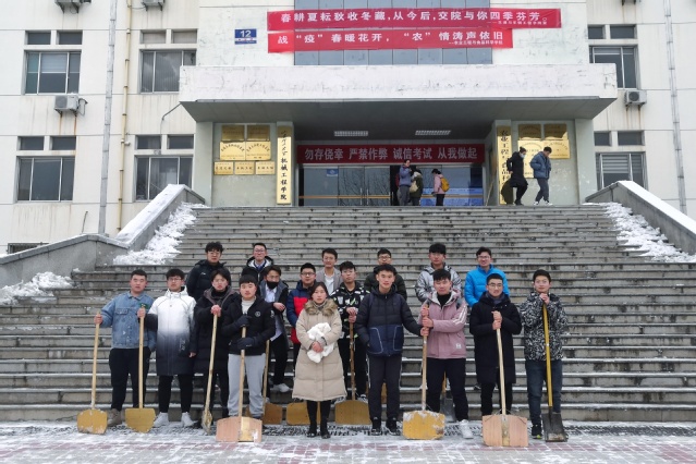 积雪清扫完成后,同学们于12号教学楼前合影留念。此次清扫积雪活动,确保了教学楼前道路的畅通和安全,方便师生的出行。有利于同学们树立“我为人人,人人为我”的奉献意识和身为员工干部、预备党员的责任意识,增强同学们的校园归属感,同时服务师生、方便你我,为构建和谐校园贡献力量。