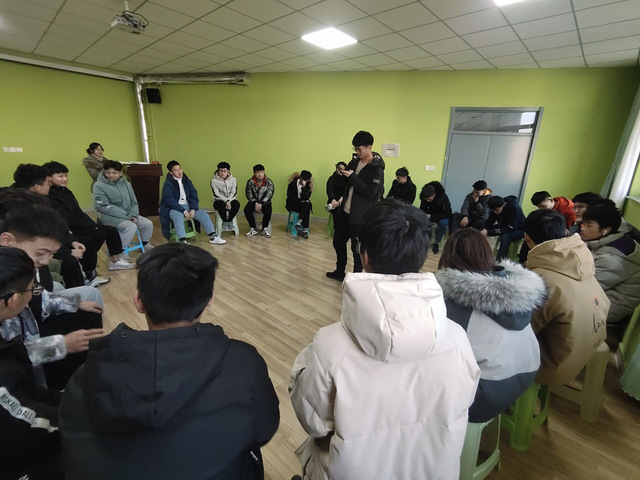 活动开始,在柴鸿菲的带领下,同学们围坐成一个大圆圈。开始了名字叫做“大风吹,吹大风”的第一个游戏,同学们根据游戏规则相互交换座位,坐错的同学要现场表演一个节目,此游戏不仅考验同学们的反应能力,更注重换位双方的沟通和协调能力。紧接着,进行了第二个游戏——“情有千千结”,这个游戏考验大家的团队协作能力和组织领导能力。最后,进行了“接力传球”游戏,柴鸿菲将同学们分成四个小组,每个小组内采用接力的形式,依次把乒乓球放入指定的纸杯中。由于乒乓球材质较轻,每个小组都出现了不同程度的失误,但是在同学们的努力配合下,各个小组都完成了任务。此次游戏,考验了大家的团结凝聚力,在一个团体中,面对挑战,只有合理分工,才有可能取得胜利。