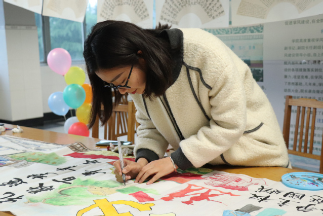 此次书法绘画展示活动分为硬笔、软笔、长卷画三部分。同学们以中国共产党的百年风雨和波澜壮阔的伟大实践为主题,饱含着对党的深厚情感进行现场创作,以书法和绘画的表现形式展现了中国共产党的光辉历程。