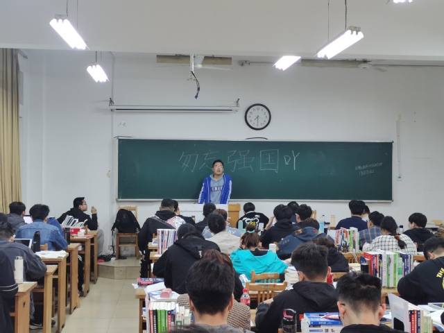 六位党员分考研和就业展开宣讲,潘亚超同志就考研前期准备进行了详细的介绍,高子一就就业的选择进行了讲解。