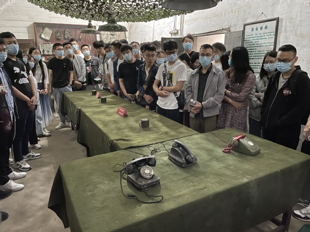 上午,党员们来到淄博市沂源县,参观华东地区规模最大、保存最完整的一处战备电台—618战备电台。该电台是二十世纪六十年代为适应国防需要,由时任济南军区司令员的杨德志将军亲自选址兴建。电台历经近60年的风风雨雨,不再承担战备任务,2006年对外公开,成为爱国主义教育基地和国防教育基地。跟随着讲解员,全体成员走过幽深的山中坑道,观摩着老式的广播设备,体验着浓郁的军事战备氛围。锈迹斑驳的电台下是共产党人的坚守,多功能水库下是共产党人的智慧,整齐的会议室下是共产党人的纪律。古迹已尘封,精神蓬勃而生,透过坑道中陈旧的设施,古老的真迹,零零碎碎的信件,映入眼帘的那个年代共产党人的艰苦卓绝和忘我牺牲的革命精神。