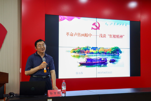 郭万保以董必武重游嘉兴南湖时所做的诗为开始,带领大家重温红船历史,从中共一大召开的过程、“红船”复原的过程以及“红船精神”的提出过程三个方面,详细分析了“红船精神”的缘起。他讲到,“红船精神”的内涵包括开天辟地、敢为人先的首创精神,坚定理想、百折不挠的奋斗精神和立党为公、忠诚为民的奉献精神;“红船精神”是勇立潮头、敢为人先的创业史,坚定理想、百折不挠的奋斗史和立党为公、忠诚为民的奉献史。他鼓励在场学员,作为新时代老员工,要发扬“红船精神”的时代意义,弘扬首创精神、解放思想、开拓创新,弘扬奋斗精神、坚定理想、干事创业,弘扬奉献精神,牢记初心,践行使命。
