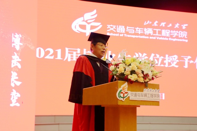 褚兆勇向2021届本科毕业生致以热烈的祝贺和诚挚的祝福,他深情寄语毕业生,2017,你们朝气蓬勃、满怀憧憬;2021,你们羽翼初丰,学业有成。今日,拨穗礼成,学位授予,美好时刻,共同见证。面对一张张洋溢着青春和幸福的笑脸,倍感欣慰却又不舍,唯祝大家心怀梦想,共赴美好前程。