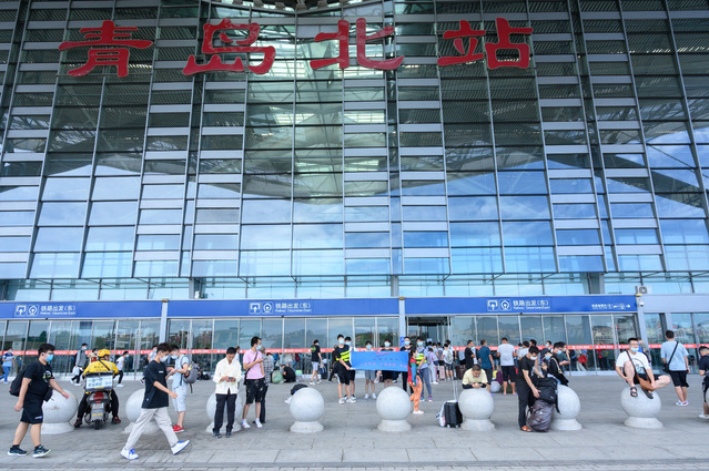 很多人坐在青岛北站的地上等待