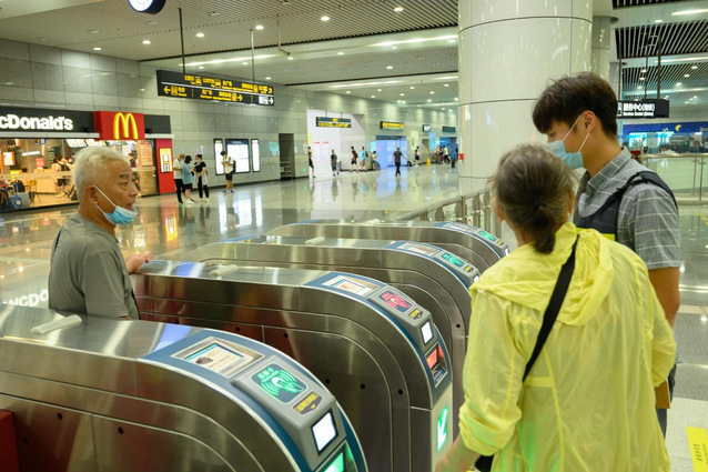 大量出租车在等待接送旅客,而大部分旅客会选择地铁、公交等交通方式,或者进行线上打车,导致出租车等候区过于拥挤。
