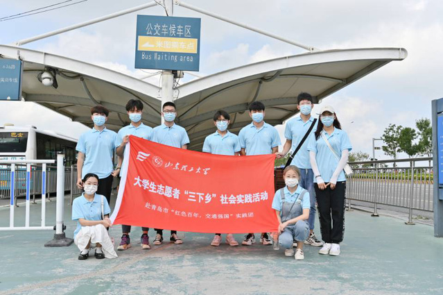 7月18日,“红色百年,交通强国”实践团早早出发前往道路交通博物馆与海军博物馆,并在公交车候车区汇合完毕。