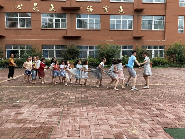 团建活动中,冀明明、杨瀚林带领同学们做游戏,小朋友们玩得兴高采烈,兴冲冲地跑着、跳着、不知疲倦,一个游戏接着一个游戏,孩子们的欢声笑语充满了整个操场。