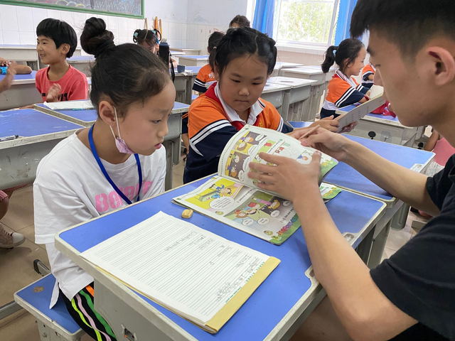 英语课上,李金源进行单词拼写的课堂检测,回顾所学过知识点。桑广跃鼓励同学们深入思考,结合自身的理解大胆表达自己的想法,并进行角色扮演,以加深同学们对文章的理解、培养英语学习兴趣。