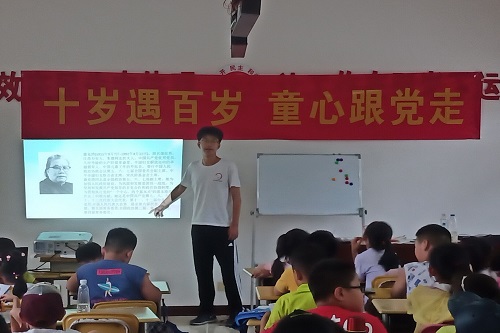 为培养和增进孩子对党、对祖国的深厚感情,增强孩子对中国共产党成立100年来的艰辛历程和辉煌成就的了解。“鳌鳌”反哺调研实践团队于7月26日下午在鳌角石村老村委支教教室中开展“讲党史故事,做薪火传人”主题活动。房玉莹、梁云斌担任本次党史故事讲解员。