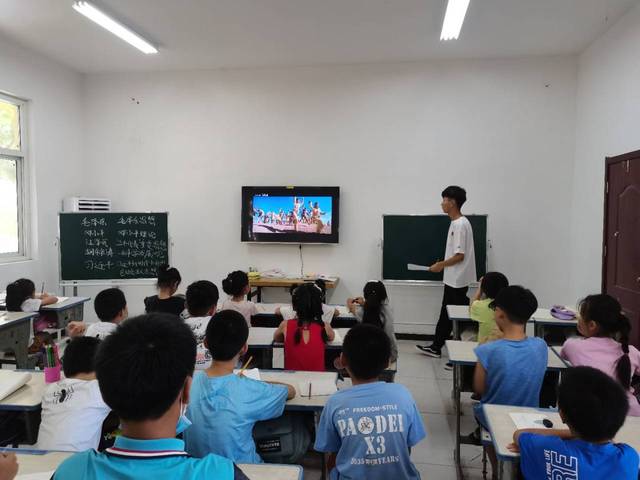 7月26日上午“星河长明”实践团于山东省鄄城县董口镇宋楼村小荷学堂开展防疫及红色专题教育课程。