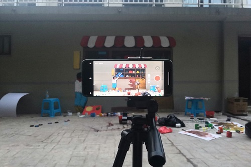 上午,刘黎昌带领实践团谈论墙绘方案,成员们分别按小组进行分工,上网查找资料,确定墙绘样图,并测量尺寸。史宇琪,陆金泽,宋道博参考样图,对墙绘图案进行初步设想,并判读方案的可行性。在与村委对接后,实践团决定首先在外墙绘制“小卖部”,再按照“从外向内”绘制规划开展墙绘工作。史宇琪,陆金泽,宋道博在外墙对绘画图案的大体框架进行勾勒。