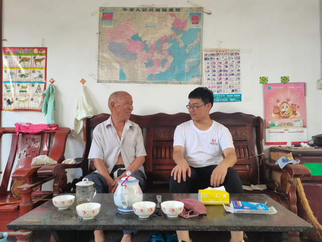 7月30日上午,“圆梦•红色育人”社会实践团部分成员来到了济宁市泗水县柘沟镇柘沟四村老党员刘庆宝的家中进行采访,刘庆宝热情地接待了成员们,并真诚地回答了成员们的问题。