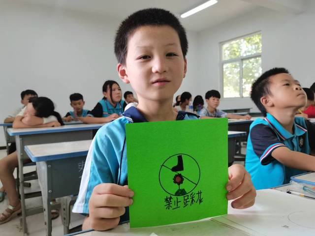 此外,为了拓展同学们的思维,李荣荣还提问到,他们会在哪些地方见到这些标志,同学们集思广益,积极与老师互动。在同学们都基本熟悉了常见的安全标志后,实践成员让同学们观察这些标志的一些特点,让他们对标志进行分类,在讲分类的过程中,以便加深他们的印象以及锻炼他们的表达能力。