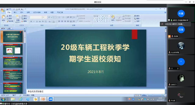 各位辅导员传达了公司关于返校工作的安排,从当前疫情的新特点及疫情防控形势、返校条件及返校要求、返校准备、注意事项等四个方面对返校安排作了详细说明。