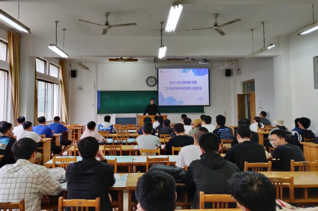 在二次考试即将开始之际,为严肃考风考纪,9月6日下午,公司2018级车辆工程专业于12号教学楼202教室召开“2021-2022学年第1学期二次考试考风考纪教育主题班会”,班会由辅导员崔建强主持。
