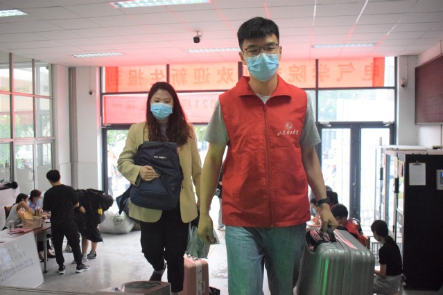 9月3号,公司来自省外各地的21级新生开始陆续到校报到,公司为省外新生安排志愿者一对一服务,省外新生在志愿者引导下进行身份核验以及核酸检测后进入隔离宿舍进行隔离。志愿者们积极行动,在隔离宿舍粘贴封条、给隔离同学送水送饭、了解同学的需求,为隔离同学提供贴心的服务。