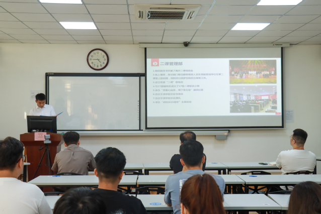 吕科晨作简要点评,他指出员工干部们在工作中未从思想上进行定位,工作规划和时间安排不合理,与指导老师沟通不及时以及活动缺乏创新意识等问题。