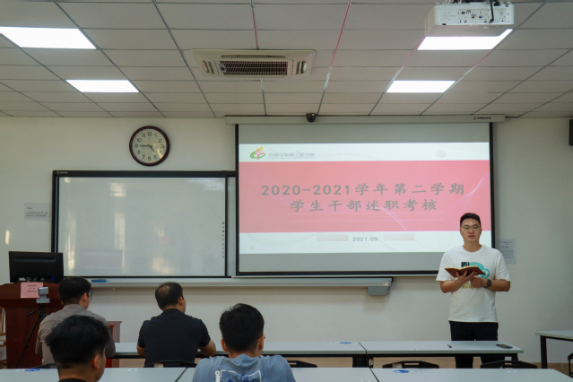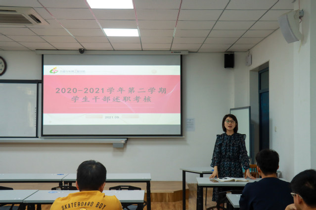 员工干部依次进行述职答辩,就自己所负责的部门进行述职,汇报上一学期工作的开展情况,展示工作进度,并总结工作上的不足,对未来工作进行规划。