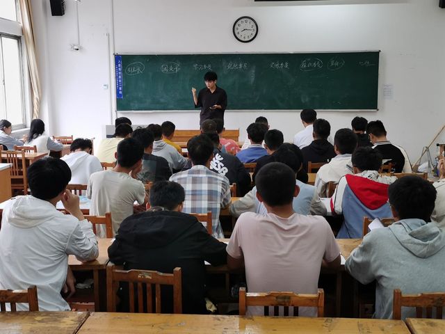 王晓飞讲述了任职班委的要求以及班委之间的联系关系,倡导同学们要努力学习,积极向上。