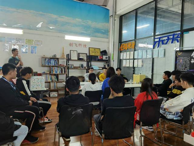 社团负责人王俊杰讲到“百团大战”注意事项,工作人员要保证设备安全,不要出现丢失现象;抽奖要保证公平性,不能出现作弊现象;负责搬桌椅的同学不要迟到,并且注意安全。他提到社团会不定期召开会议布置工作,相关骨干成员会单独召开会议。最后,他感谢社团学长学姐的前期工作和大一新生的加入,希望所有成员加强团队协作,将创飞建设得更好更强。