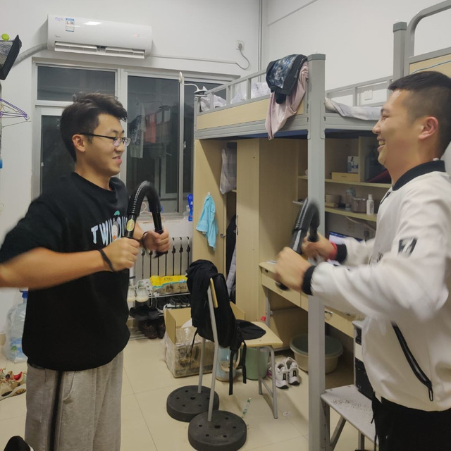 同学们发挥自己的想象力,充分利用不同的宿舍设施,结合宿舍现有的健身器材,积极开展俯卧撑比赛、握力器大王、瑜伽yoga等多种运动比赛项目,同学们可以根据自己的兴趣爱好选择适合自己的项目。经过激烈角逐,姜嘉伟同学在握力比赛中击败孙滕同学夺得“握力器大王”称号,周昕以68个俯卧撑的好成绩位列第一,女生宿舍的四人瑜伽也给大家留下了深刻印象,获得全班同学一致好评。